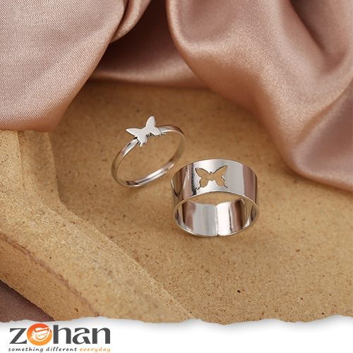 Trendy Butterfly Rings for Men & Women – Lover Pack of 2 Open Adjustable Rings for Couples – Couples Ring